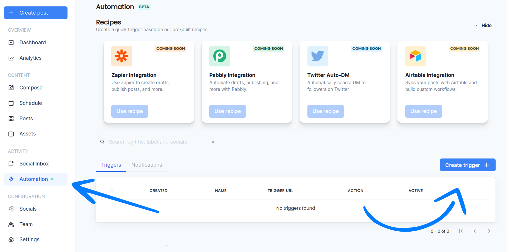 Next, let's go to the Automation page and create a new Trigger.