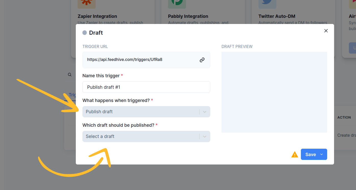 We want to pick Publish draft under the field "What happens when triggered?"