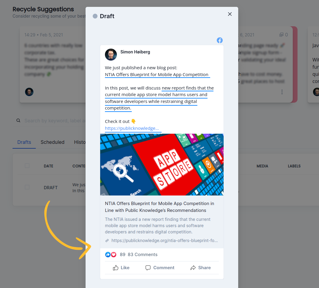 Let's do that by writing a post on the Compose page, but without scheduling it.
