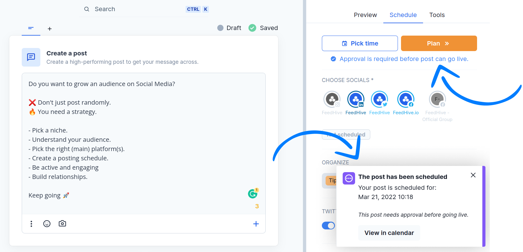 In this article, we will take a look at how FeedHive's approval workflow works, and how to set it up.